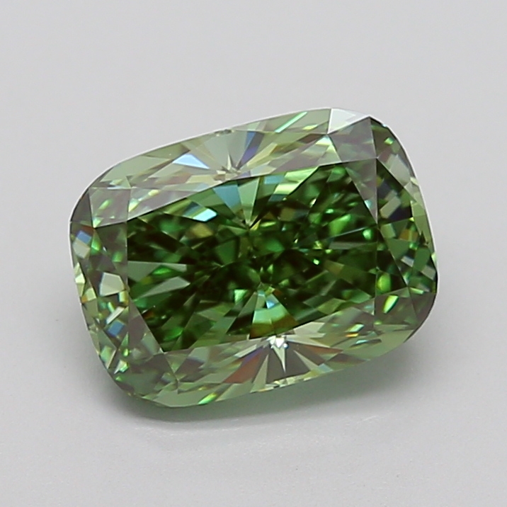 Lab Grown Diamond Cushion 3.21ct Fancy Vivid Green Green VS1