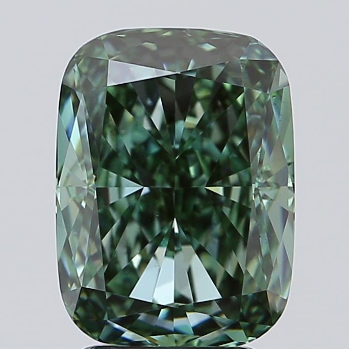 Lab Grown Diamond Cushion 3.30ct Fancy Vivid Green VVS2