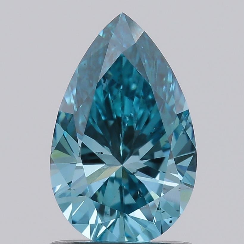 Lab Grown Diamond Pear 1.02ct Fancy Intense Greenish Blue VS1